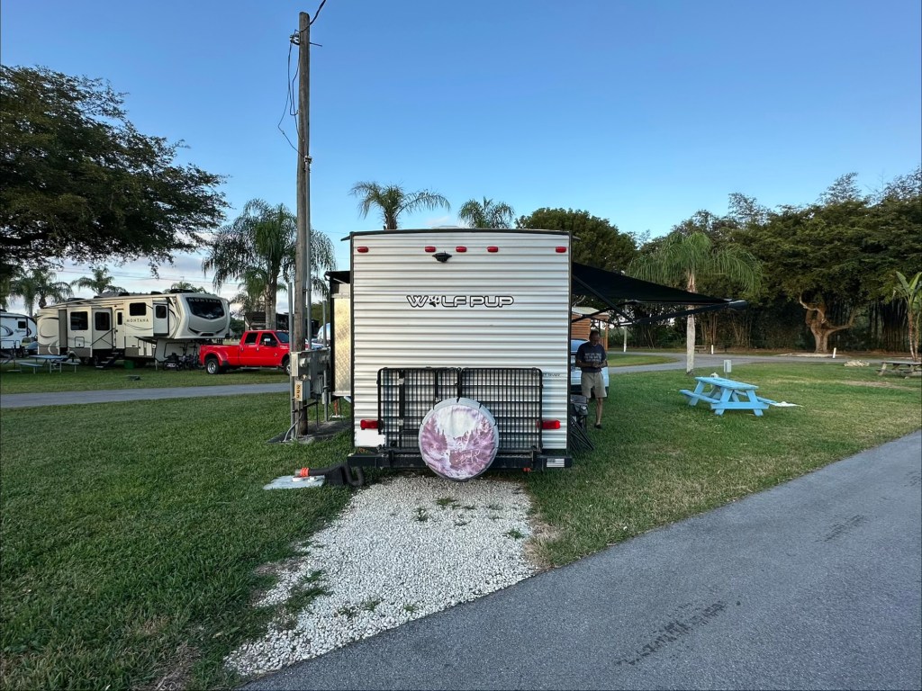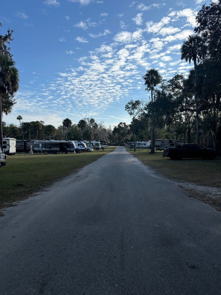 We stayed at this campground for three weeks and paid $0 per night as Thousand Trails members. We stayed in campsite F1. We originally had 3 separate reservations in different sites because of the newer Thousand Trails assigned site policy. We have never had an issue asking for a change in site or to have our reservations combined so we didn’t have to move. That is until this campground and their front office person, Morgan. She was very resistant, perhaps incapable, of looking at their schedule and figuring out a solution for us. Morgan treated us like we were irritating her and gave us a lot of attitude. We are so grateful that a few days later the property manager, Choula, was able to keep us in our site for the entire duration of our stay and did so happily. The campground is next to a major road so we heard a lot of road noise. It also seems to be a popular campground for people with children and their noise. We enjoyed the trails in the campground but there isn’t much to do in the immediate area. Sebring is the closest decent sized town and is a 45 minute drive. St. Petersburg and Tampa are about a 90 minute drive. We had 3 bars Verizon 5G. (Dec 2025)