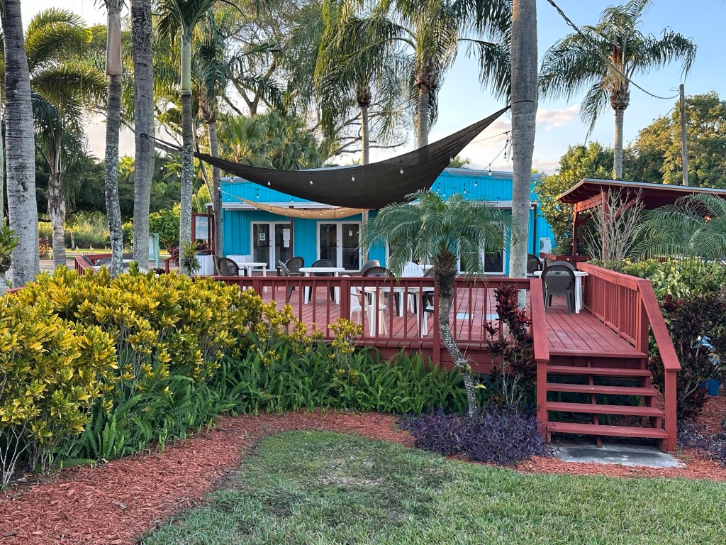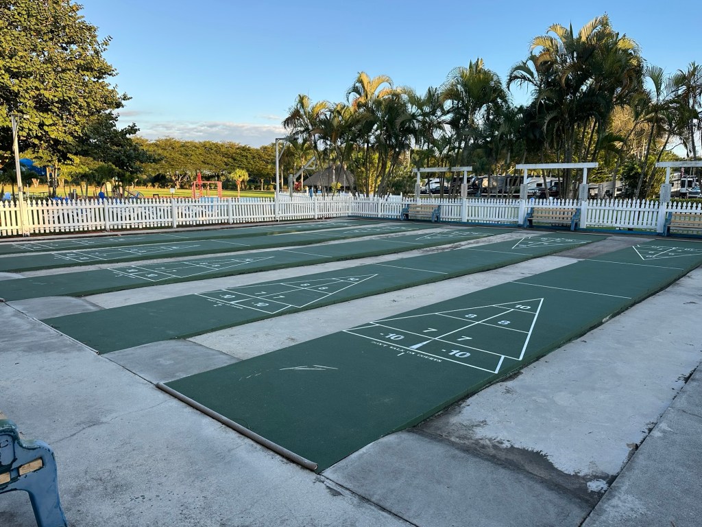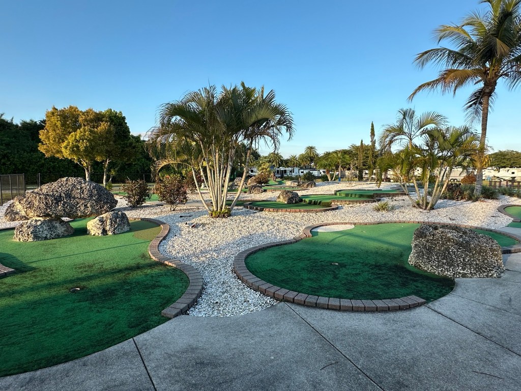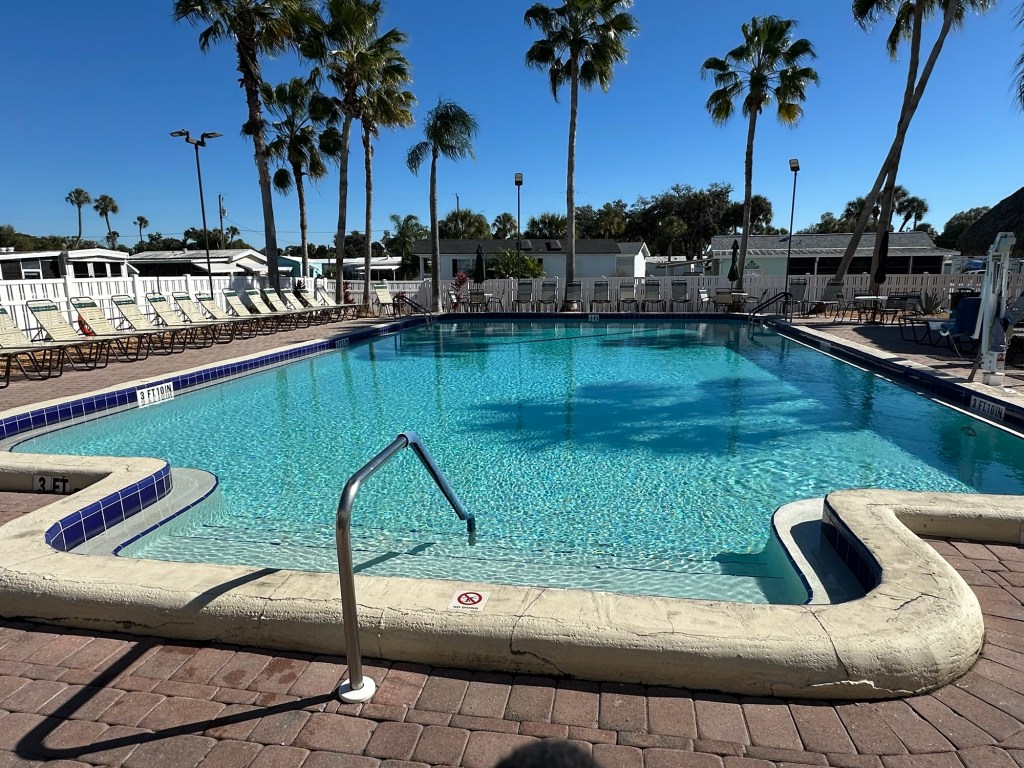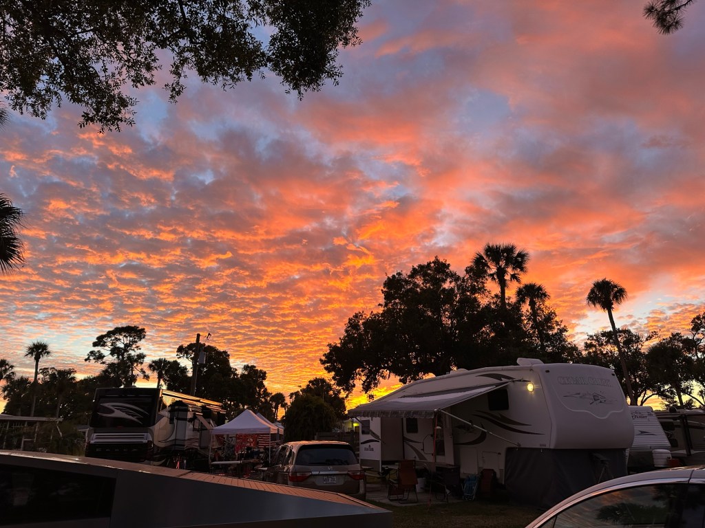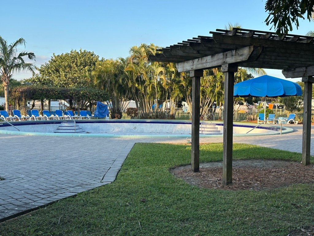 We stayed at this campground for two weeks and paid $0 per night as Thousand Trails members. We stayed in campsite D3-14 which is a site on the edge of the property. A railroad track was behind our fence and we really enjoyed seeing some trains go by. The campground was quiet and populated by mostly older people. It is with an hour drive to many parks and tourist areas like Sanibel Islands. We had 3 bars of 5G with Verizon. (Dec 2025 – Jan 2026)