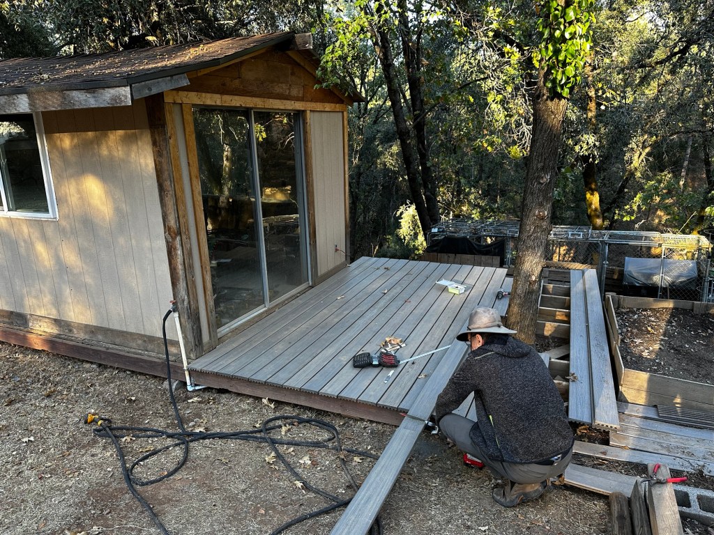 After the vet, Daniel and I got some things done around the camper and Kim and Ben’s house. Daniel continued work on the small deck being built next to a shed. Daniel has quite a few chicken foremen who periodically check on his progress.