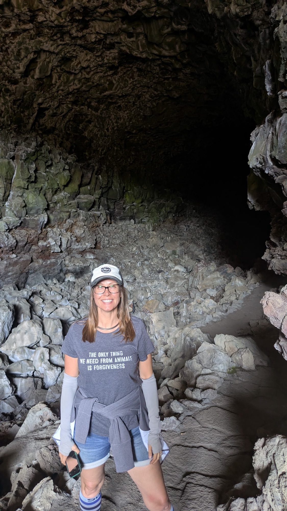 We trekked into a lava tube cave in the desert where there is a continuously frozen pond, enjoyed beautiful views of Mt. Hood, and ate good vegan food.